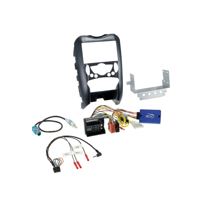 By ACV Double Din Radio Replacement Kit, allows the fitment of a Double DIN aftermarket headunit to the selected vehicle. This kit includes double din fascia, steering stalk controls, and aerial connections.