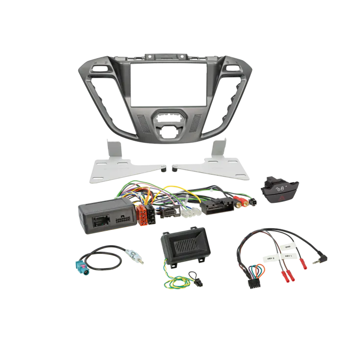 Ford Transit Custom Installation Kit. Supplied With Phoenix Silver Double DIN Fascia, CAN-Bus Steering Wheel Control Interface, FAKRA Antenna Adapter, Hazard/Door Lock Switch & Universal Patchlead