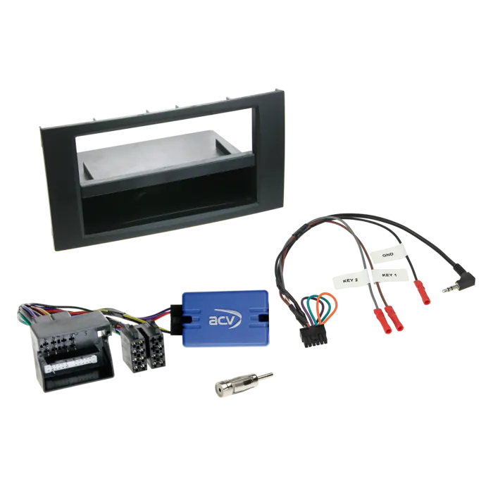 Ford Installation Kit. Supplied With Black Single DIN Fascia, Steering Wheel Control Interface, Antenna Adapter & Universal Patchlead