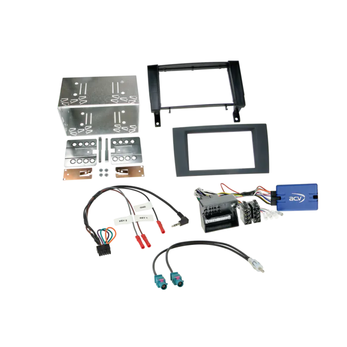 Mercedes SLK R171 Installation Kit. Supplied With Black Double DIN Fascia, CAN-Bus Steering Wheel Control Interface, FAKRA Antenna Adapter & Universal Patchlead