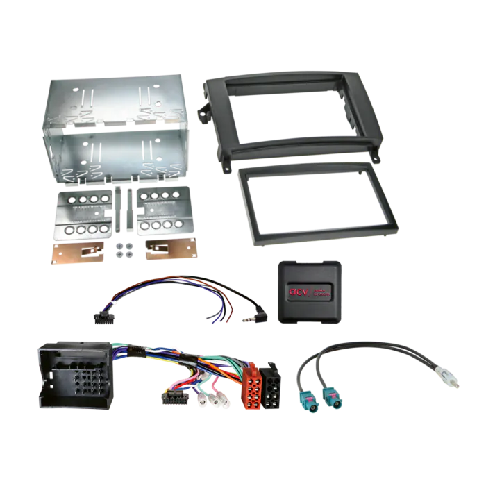 Mercedes Installation Kit. Supplied With Black Double DIN Fascia, Steering Wheel Control Interface, FAKRA Antenna Adapter & Universal Patchlead