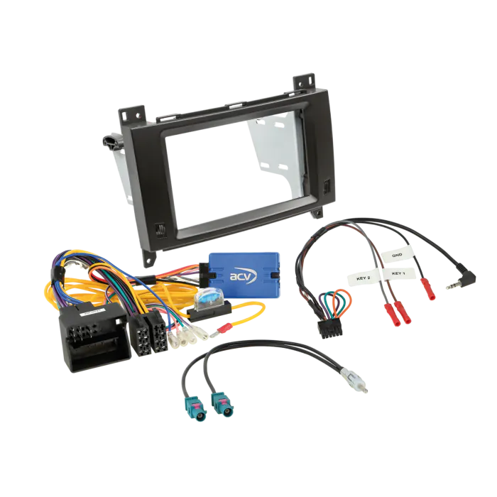 Mercedes Vito Installation Kit. Supplied With Black Double DIN Fascia, FAKRA Antenna Adapter, Steering Wheel Control Adapter & Universal Patchlead