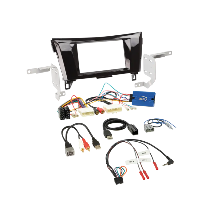 Nissan Qashqai/X-Trail 14> Installation Kit. Supplied With CAN-Bus Steering Wheel Control Interface, Black Double DIN Fascia, Antenna Adapter & Universal Patchlead. Retains OEM USB/AUX Socket (If Feature Is Available)