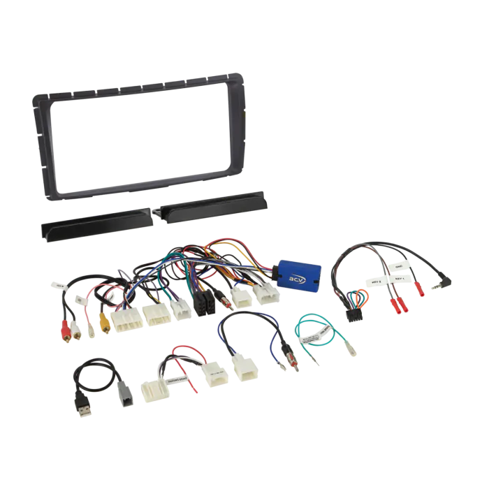 Toyta Hilux Installation Kit. Supplied With Black Double DIN Fascia, Resistive Steering Wheel Control Interface, Antenna Adapter, OEM Camera Retention Interface & Universal Patchlead