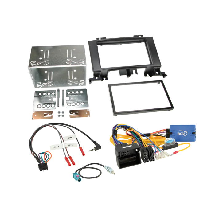 VW Crafter Installation Kit. Supplied With Black Double DIN Fascia, FAKRA Antenna Adapter, Steering Wheel Control Interface & Universal Patchlead