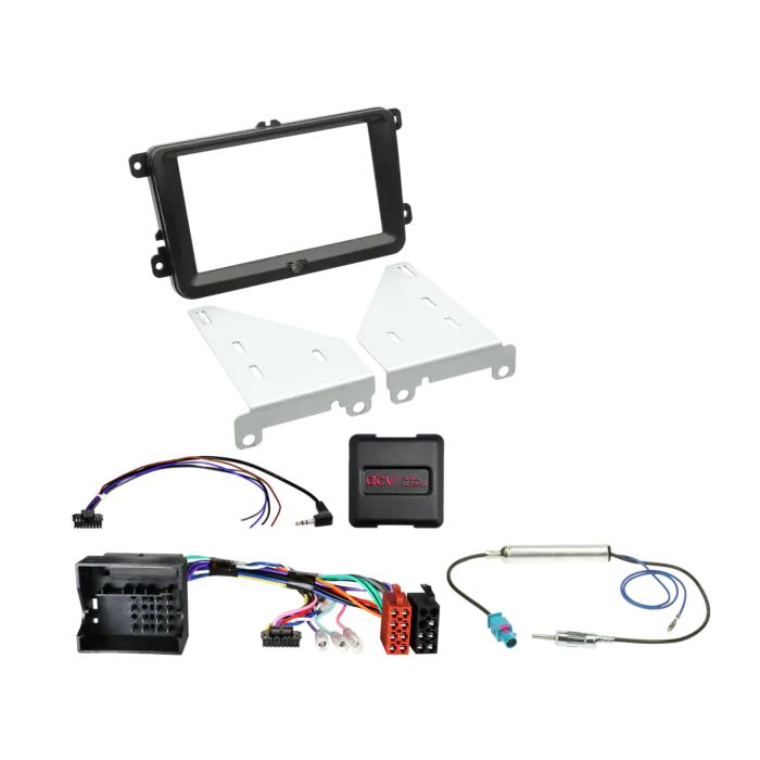 VW Installation Kit. Supplied With Black Double DIN Fascia, Steering Wheel Control Interface, FAKRA Antenna Adapter & Universal Patchlead