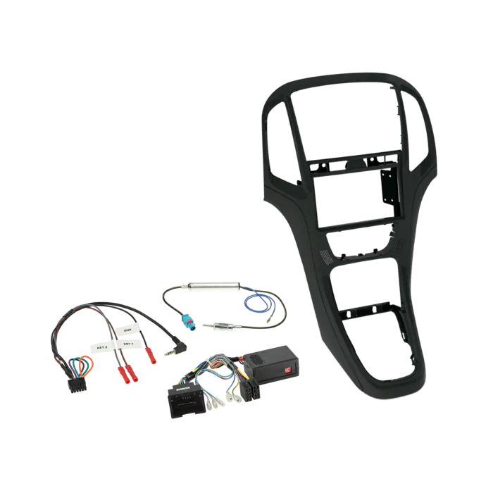 Vauxhall Astra Installation Kit. Supplied With Pearl Black Double DIN Fascia, GM LAN Steering Wheel Control Interface, FAKRA Antenna Adapter & Universal Patchlead