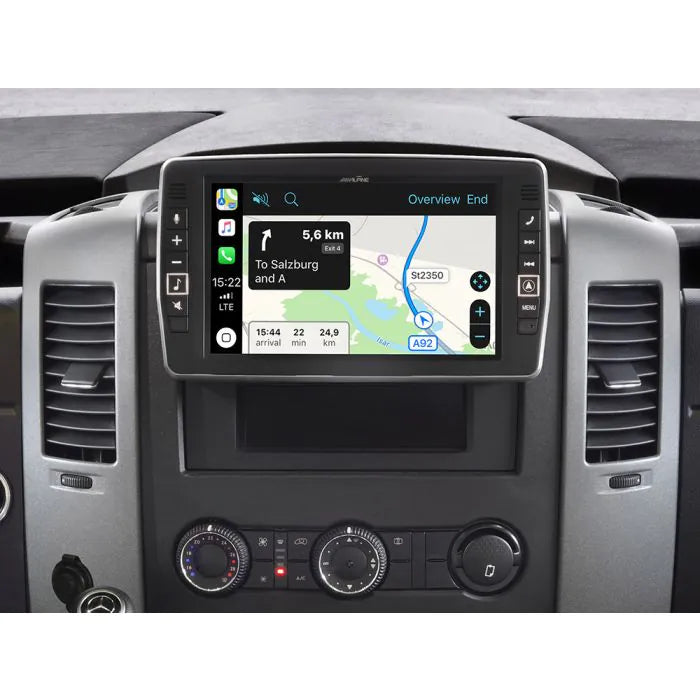 The X903D-S906 is exclusively designed for the Mercedes Sprinter (S906 model year 2013 and newer). The gigantic 9-inch high-resolution touch screen of the X903D-S906 will amaze you with superb picture quality for navigation maps, menus and video content. Best of all: the installation allows the lower pocket in your dash to remain unused.