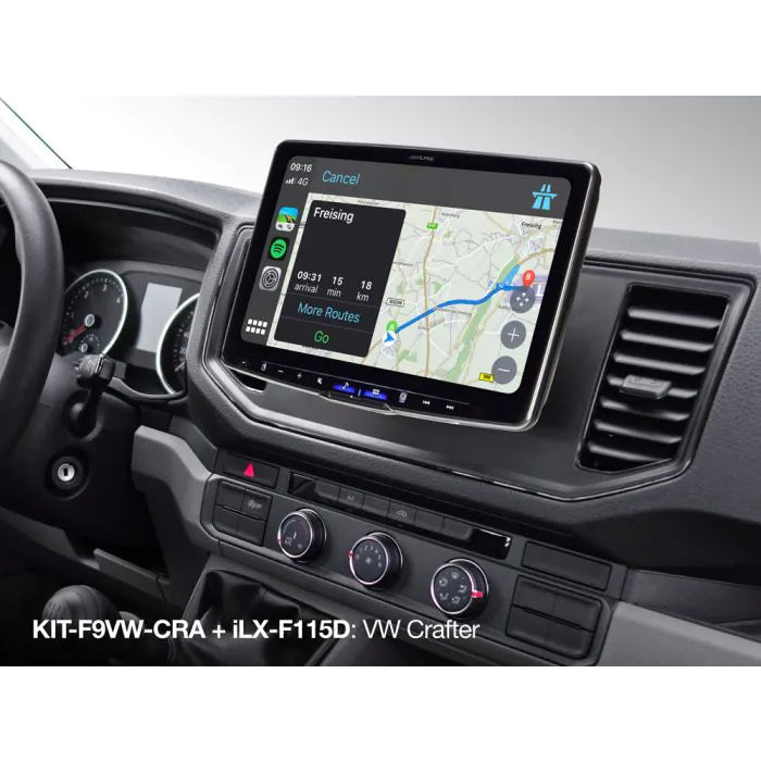 The installation kit KIT-HALO-G7R lets you perfectly integrate a 1DIN Alpine Halo system with 9-inch (INE-F904D, INE-F904DC, iLX-F905D) or 11-inch screen (iLX-F115D) into a Golf 7 (model year 08/2013 – 02/2017).