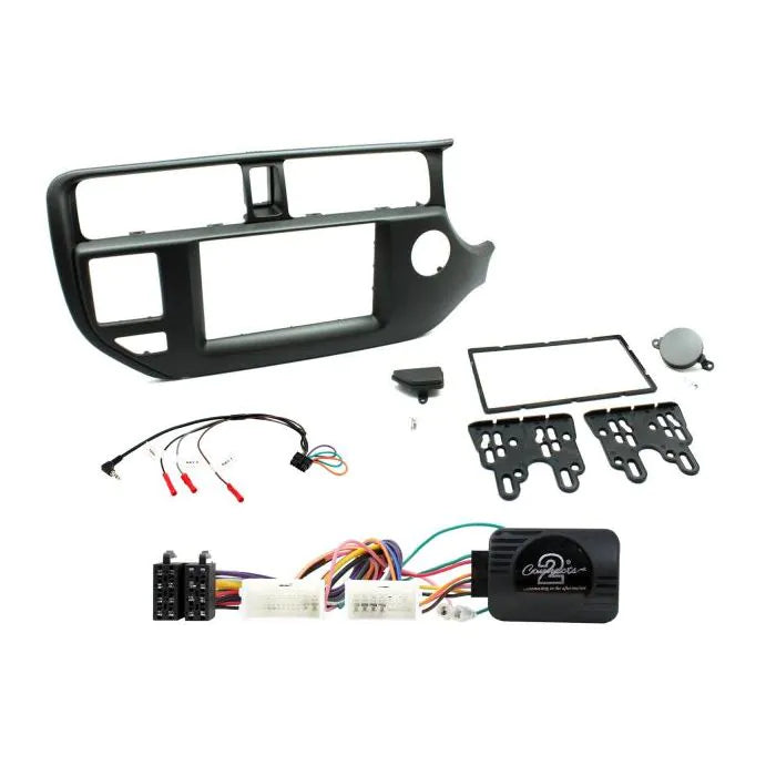 Kia Installation Kit. Supplied With Black Double DIN Fascia, Steering Wheel Control Interface & Universal Patchlead