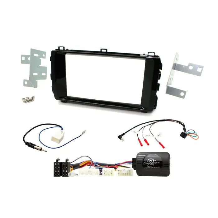 Toyota Auris Installation Kit. Supplied With Piano Black Double DIN Fascia, Resistive Steering Wheel Control Interface, Antenna Adapter & Universal Patchlead