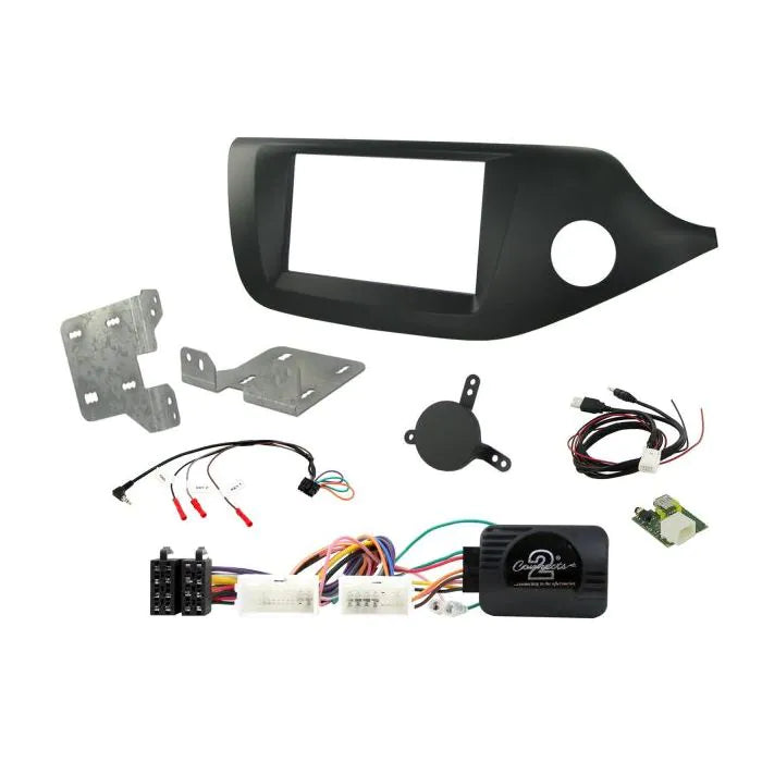 Kia Installation kit with Matte Black Fascia, Steering Wheel Control interface, Universal Patch lead and USB Retention interface