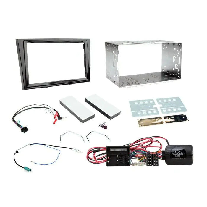 Vauxhall Installation Kit. Supplied With Piano Black Double DIN Fascia, CAN-Bus Steering Wheel Control Interface, Vauxhall Release Keys, FAKRA Antenna Adapter & Universal Patchlead