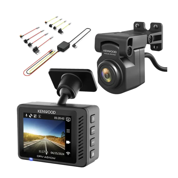 The DRV-A601W is equipped with 8.3 Megapixel* Wide 4K recording and 3.0" Full Colour TFT. Easily share recorded videos directly to social media using the KENWOOD DASH CAM MANAGER smartphone application (iOS or Android). The KENWOOD VIDEO PLAYER is a desktop software for displaying video recorded with this device (Windows & Mac). The camera is equipped with a G-Sensor designed to detect a collision, and GPS that records speed, latitude, and longitude. When the vehicle is parked and turned off, parking mode becomes active (CA-DR1030 Included). When in Dual Camera Recording Mode with KCA-RC200 (Included), both cameras maximum recording resolution is 3.7 Megapixeg. The camera works with both 12V and 24V applications. MicroSDXC/SDHC card 8GB to 256GB are supported, 64GB microSD card is included.
