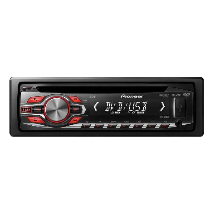 The DVH-340UB is a smart solution for playing DVDs in your car. To view them, install a screen in the seat headrests, for example. DVD-Video, DVD-R, DVD-RW and Video CD are supported, as well as CD, CD-R and CD-RW